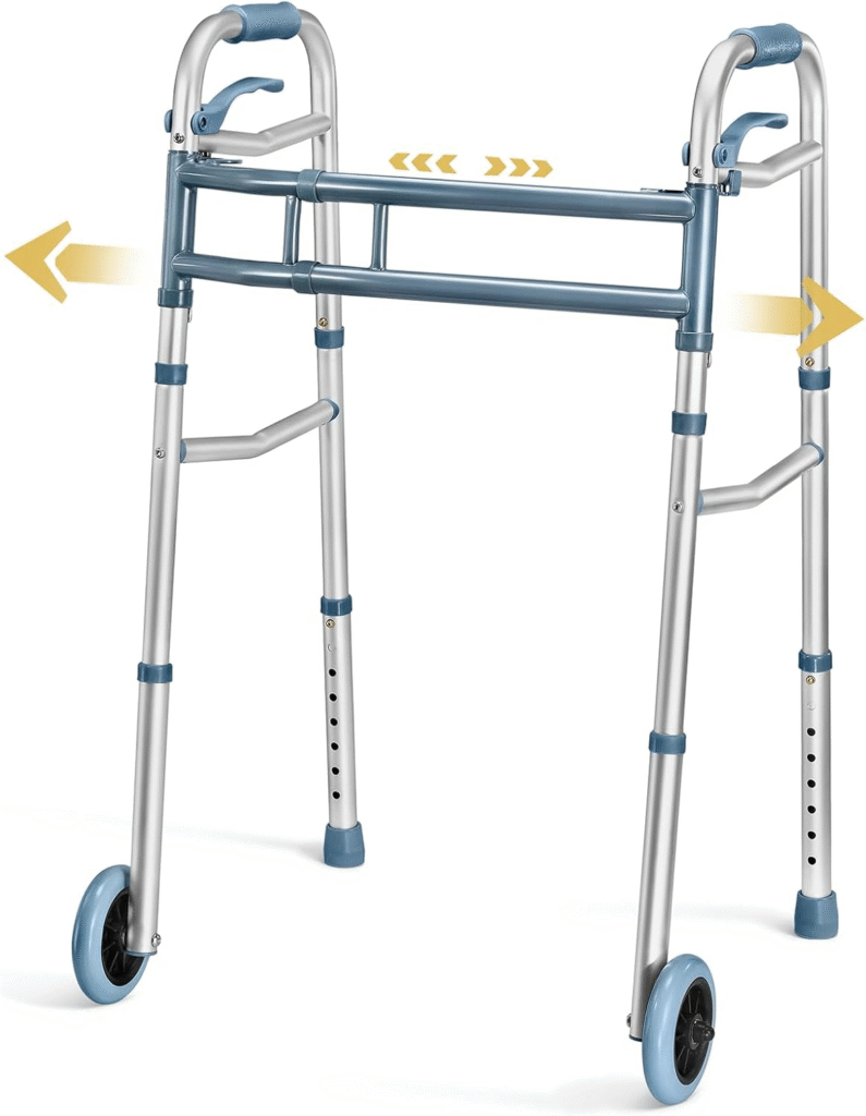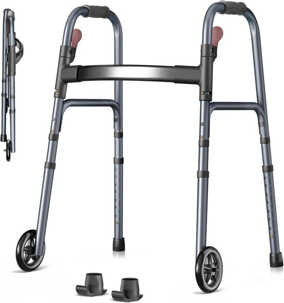 A Folding Walker with Wheels provides balance and stability while allowing smoother movement. The front wheels reduce the need to lift the walker with every step. This helps lower strain on the arms and shoulders.