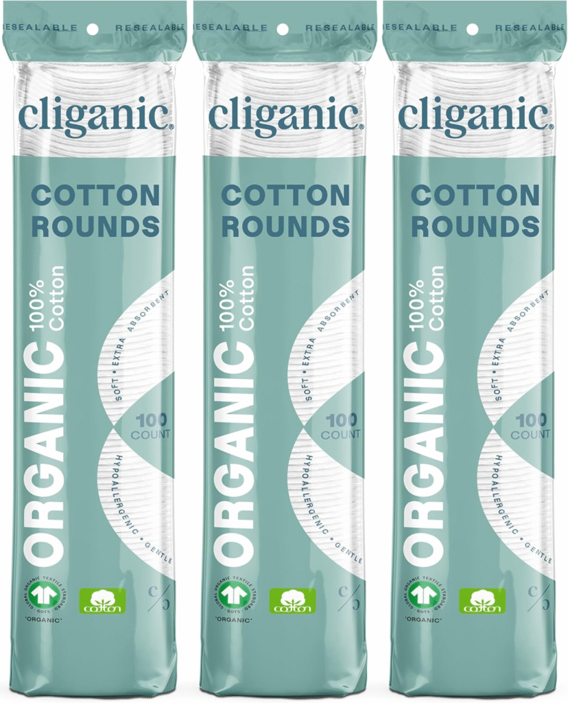 While technically cotton rounds, Cliganic’s ultra-soft pads and swabs share the same high-grade organic cotton standard. These are made from GOTS-certified organic cotton, ideal for makeup removal, toner application, and delicate skincare.